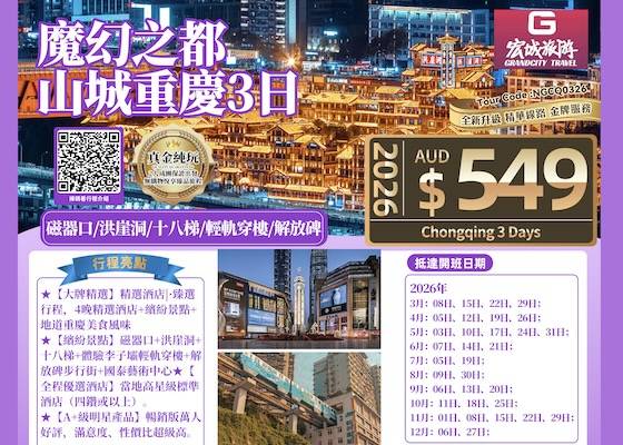 【真金纯玩】ZGM 中国山城重庆3日游-磁器口/洪崖洞/十八梯/轻轨穿楼/解放碑